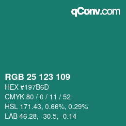 Die Aufschlüsselung der Farbe in das RGB-Farbsystem: In diesem Farbton sind von 255 maximalen Farbanteilen jeweils 25 Rot, 123 Grün und 109 Blau.