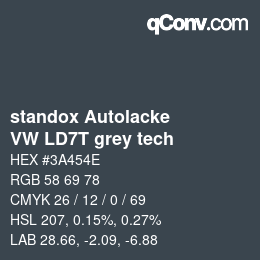 Shades are based on the same hue and represent a darker version of the current color standox Autolacke - VW LD7T grey tech. In addition to the border colors white and black, almost all colors have shades that can be used optimally in web design.