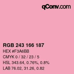 La décomposition de la couleur dans le système de couleurs RGB : dans cette teinte, sur 255 parts de couleurs maximales, respectivement 243 Rouge, 166 Vert et 187 bleu.
