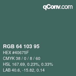 La décomposition de la couleur dans le système de couleurs RGB : dans cette teinte, sur 255 parts de couleurs maximales, respectivement 64 Rouge, 103 Vert et 95 bleu.